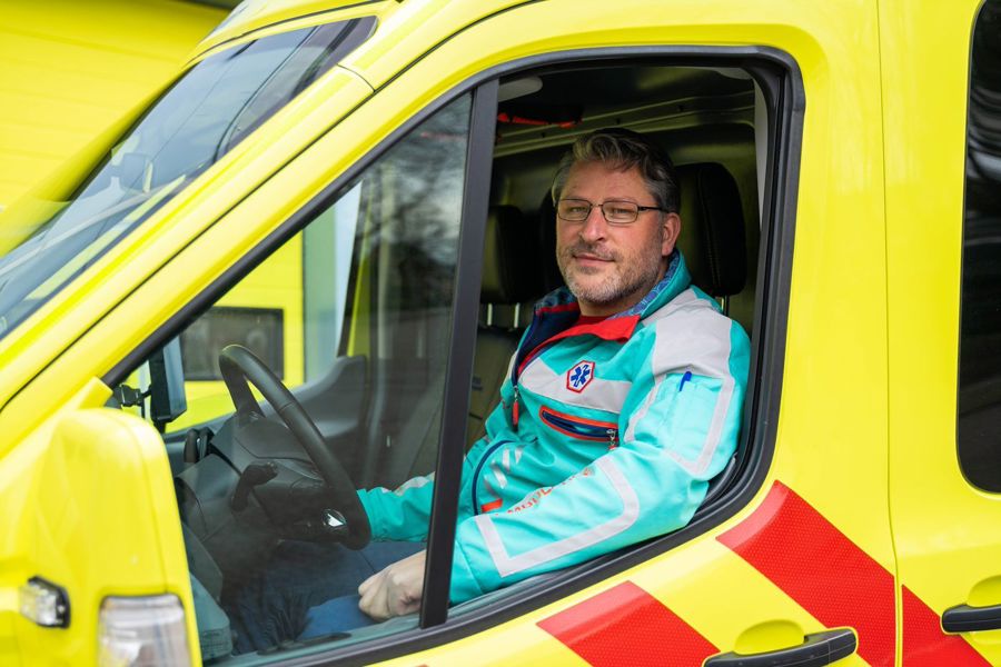 Ook als ambulancechauffeur houdt hij zoveel mogelijk afstand tot de patiënt, ook nu hij als acuut zorgpersoneel al gevaccineerd is. Moeilijk vindt hij het wanneer dierbaren op afstand moeten blijven als patiënten naar het ziekenhuis gaan. ,,De patiënten zijn dan vaak al helemaal 'op'. En dat is dan nog maar het begin. Normaal zeggen we als ambulancepersoneel op zo'n moment: geef elkaar nog even een dikke kus. Maar dat kan nu niet. Dat is heel schrijnend.”